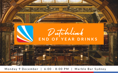 We invite you to join us for the Dutchlink End of Year Drinks on Monday 9 December, from 6:00 PM to 8:00 PM at Marble Bar, Hilton Sydney. Enjoy a relaxed evening and catch up with Dutchlink friends. A free drink and canapés a